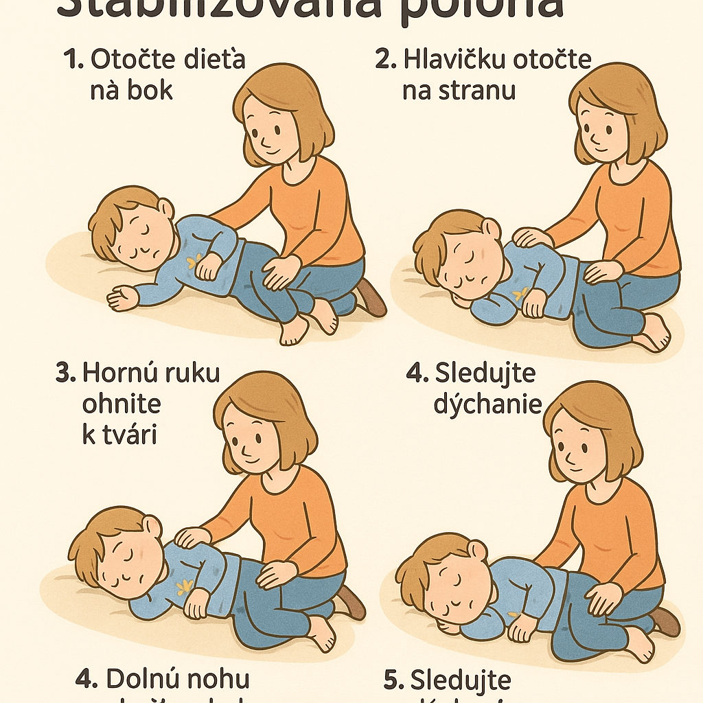 ⚠️ Pozor: Ak máte podozrenie na poranenie chrbtice, dieťa nepresúvajte – sledujte dýchanie a volajte pomoc.