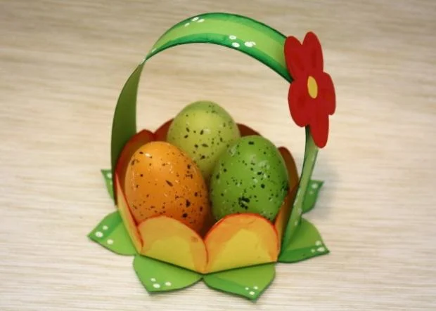 Na výrobu kvetinového košíčka si pripravte: hrubý farebný papier, nožnice a lepidlo. Kto sa chce zabaviť s tušom, môže ho použiť tiež. Pozrite si návod na veselý kvetinový košíček s vajíčkami