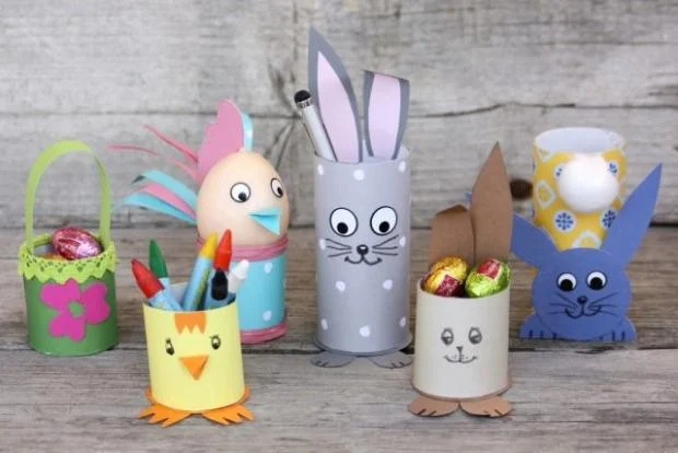 Inšpirácie s mini postupmi na veľkonočné tvorenie s deťmi. Všetko sú to veľmi jednoduché veci, stačí sa hrať s materiálom, ktorý je ľahko dostupný. Pozrite si návody na veľkonočné tvorenie z roliek toaletného papiera