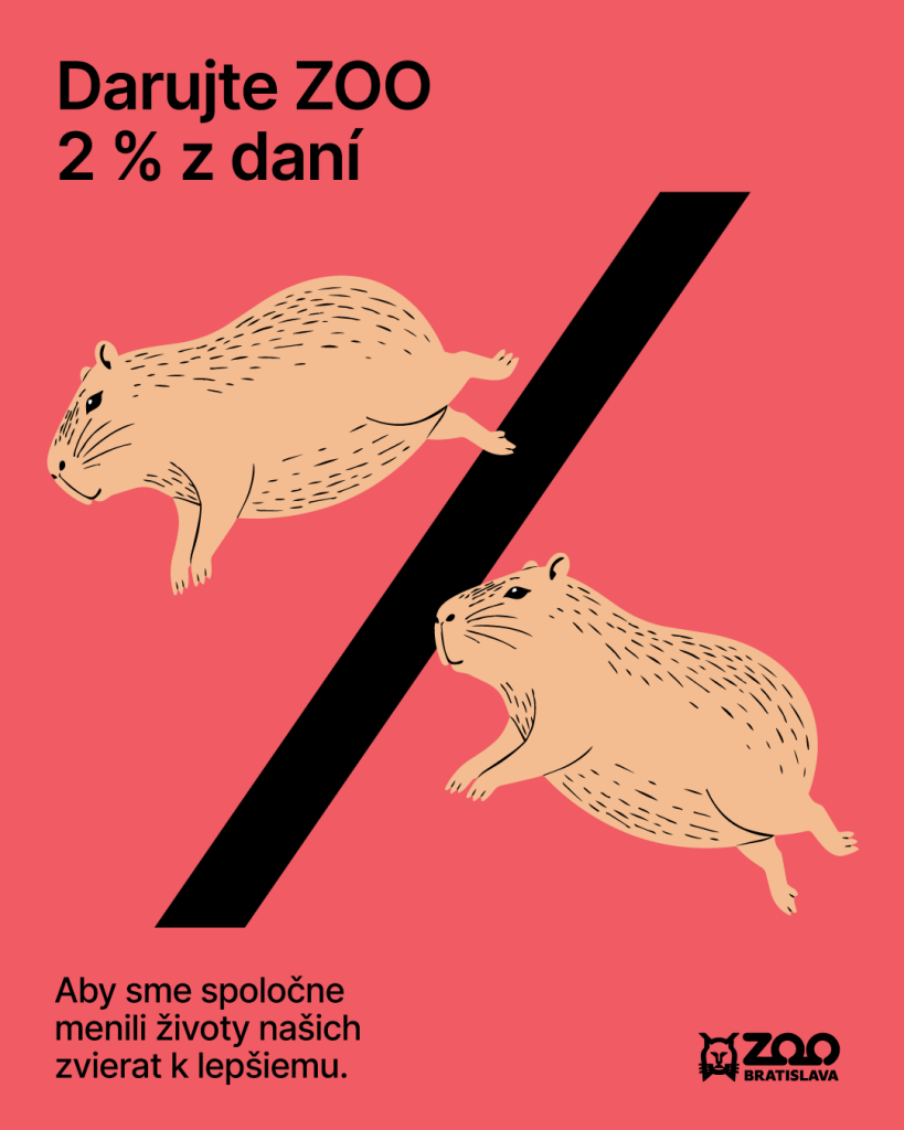 Kompletné informácie o poukázaní 2 % dane pre zoo nájdete na webe: https://www.zoobratislava.sk/ako-pomoct/dve-percenta-dane/