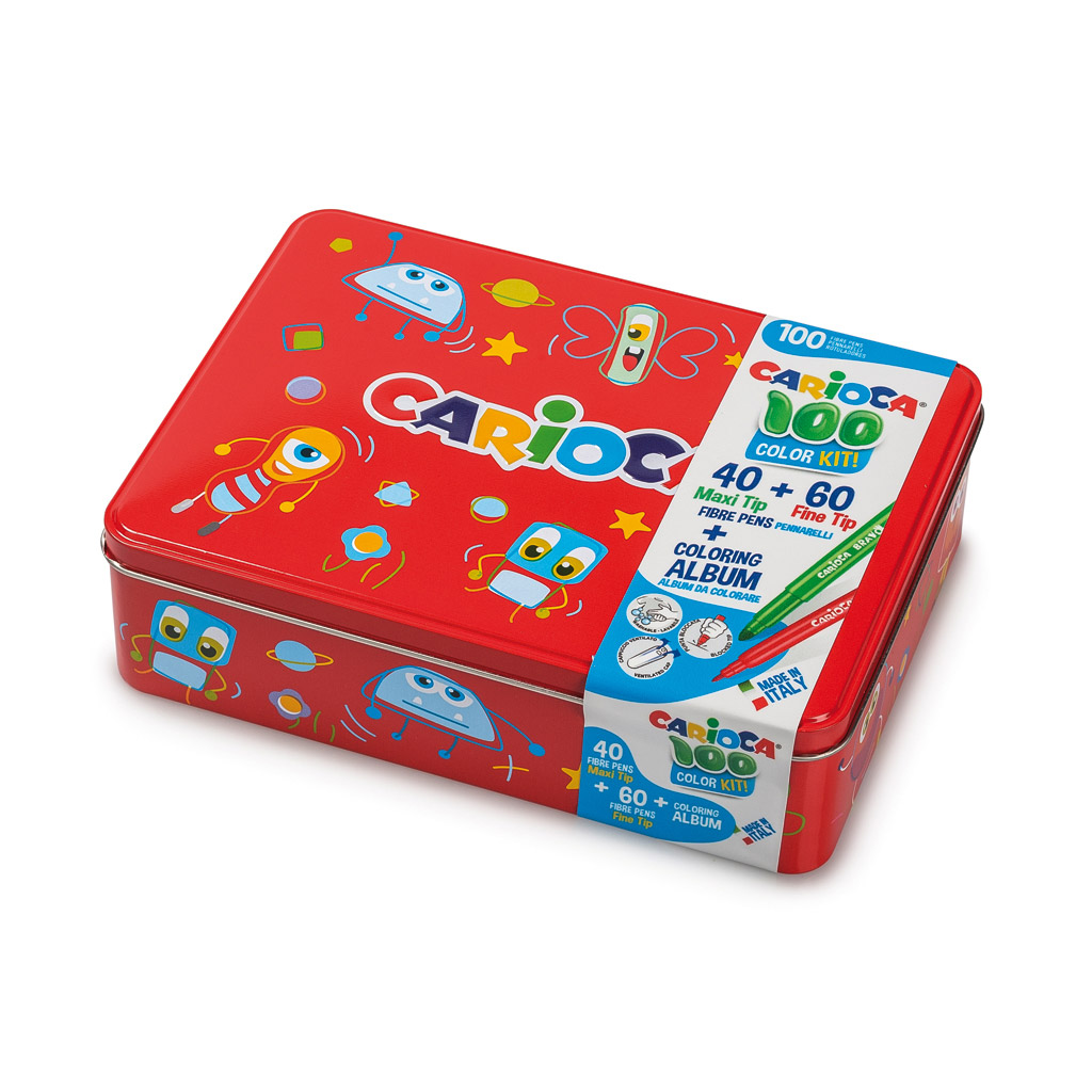 Obrovská súprava fixiek v kovovom darčekovom boxe. Obsahuje 40 fixiek s hrubým hrotom, 60 fixiek s tenkým hrotom a maľovanku. Deti milujú širokú škálu farieb a možnosti vzájomných kombinácií.
