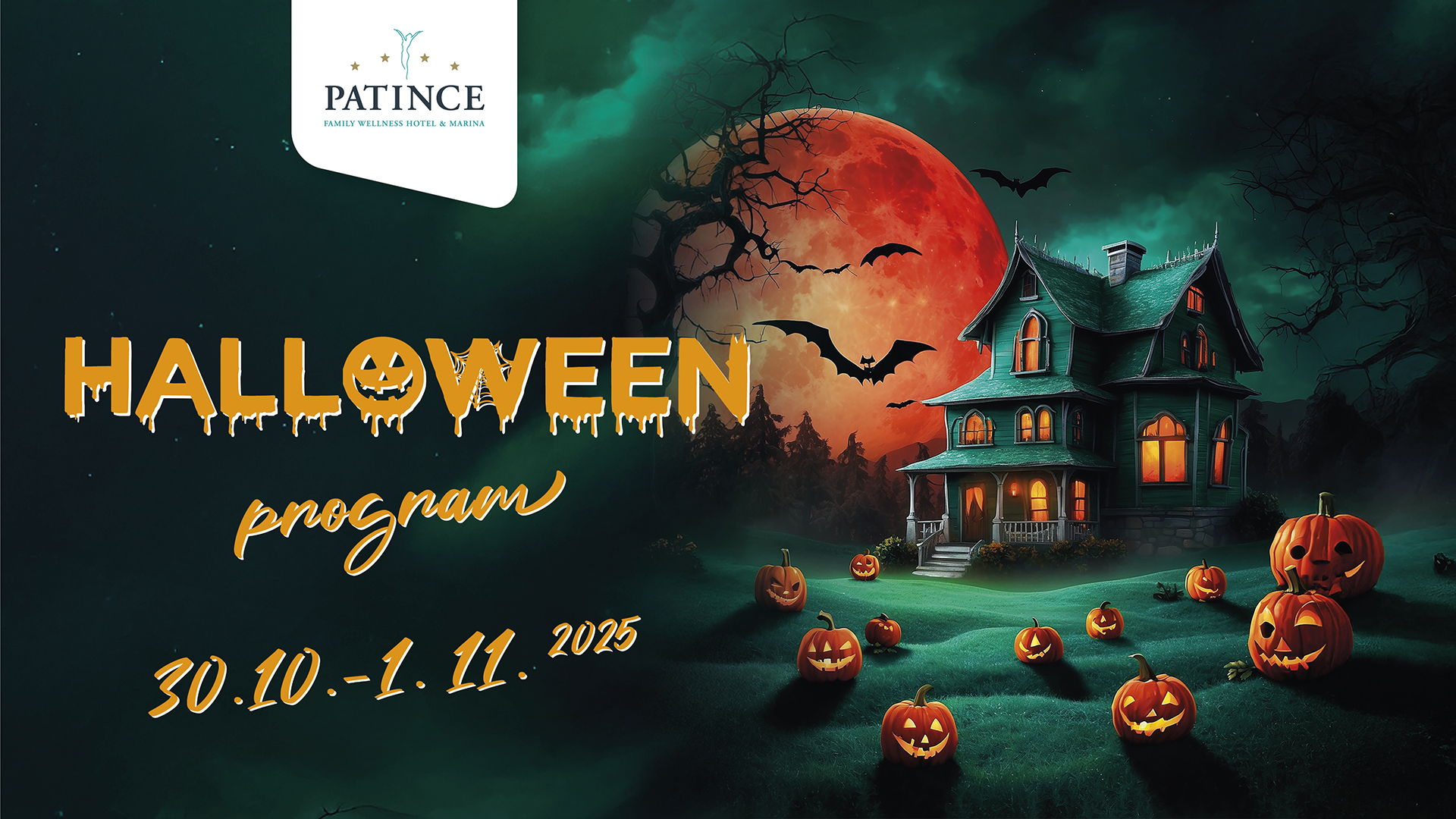 Počas Halloweenskeho pobytu vo Wellness Hoteli Patince si vychutnáte komfortné ubytovanie v moderných izbách a apartmánoch. V cene pobytu je neobmedzený vstup do Thermal parku a Wellness centra s bazénmi, vírivkami a saunami. Pre deti aj dospelých je pripravený pestrý halloweensky animačný program plný súťaží, dielničiek a strašidelnej zábavy.