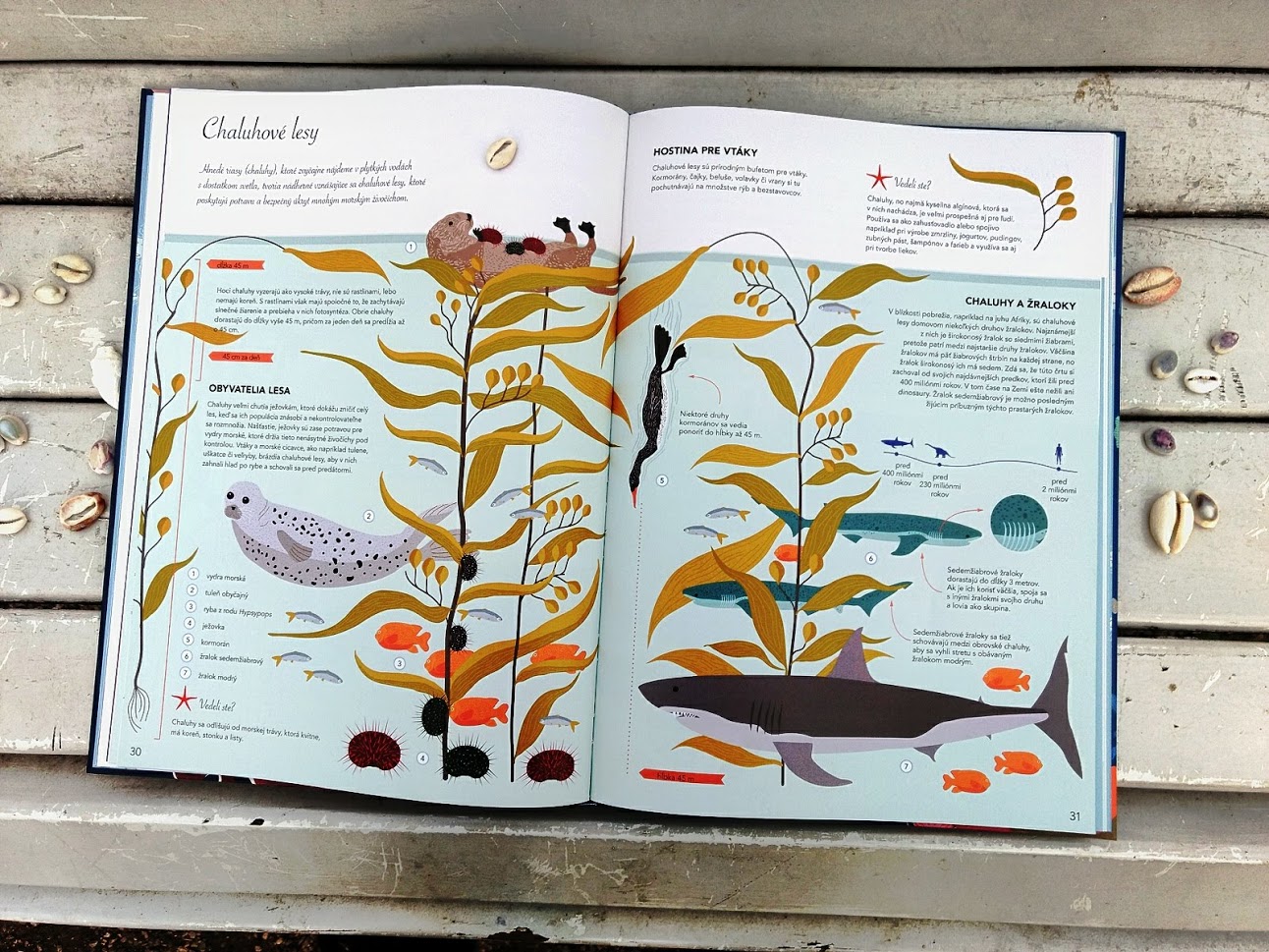 Každej téme je venovaná celá dvojstrana. Väčšinou je kniha ladená do svetlých pastelových podtónov, okrem kapitol, ktoré popisujú morské dno a najhlbšie miesta oceánu. V týchto prípadoch sú farby podľa vzrastajúcej hĺbky stále tmavšie a tmavšie.