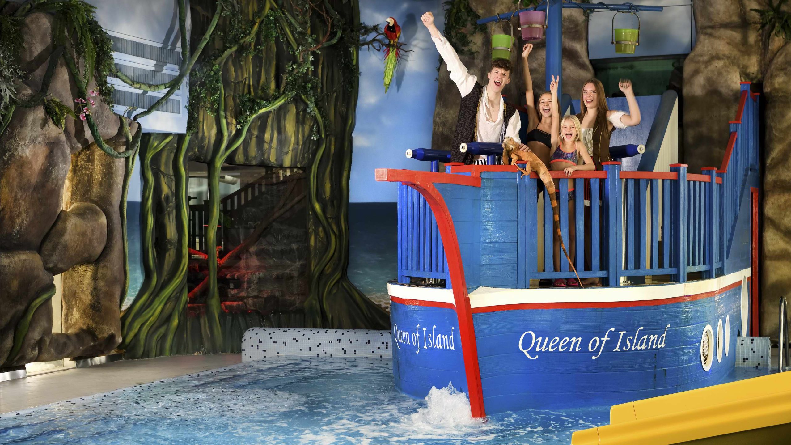 - detský bazén Treasure Island – Ostrov pokladov (bazén so slanou vodou, stroskotanou loďou, šmýkačkami a atrakciami, vírivka pre dospelých, terárium s leguánmi)