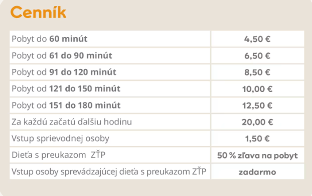Vstup do detského kútika bude štandardne spoplatnený podľa aktuálneho cenníka.