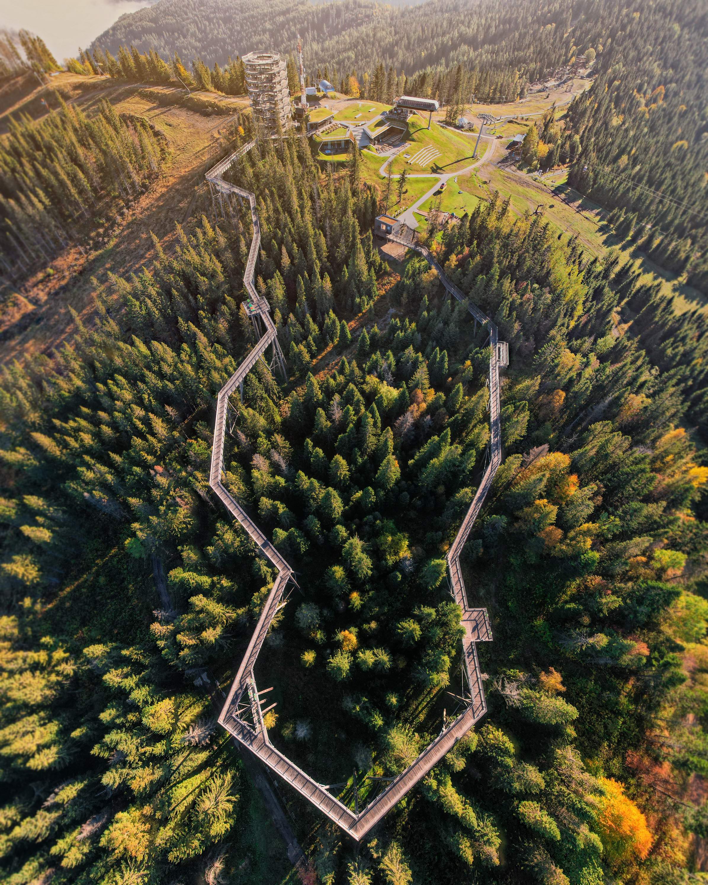 Jesenná návšteva Chodníka korunami stromov má špecifickú atmosféru. Trasa dlhá 1234 metrov vás prevedie pestrou prírodou Pieninského národného parku až na 32-metrovú vyhliadkovú vežu. Z vrcholu sa pred vami otvorí panoráma Belianskych Tatier, Pienin a malebného Zamaguria – a na jeseň navyše v tých najživších farbách. Vďaka širokému chodníku a bezbariérovému prístupu je to ideálny tip aj pre rodiny s kočíkom či starých rodičov.