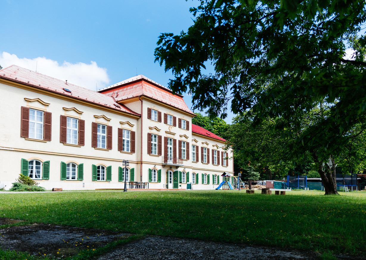 Oddýchnuť si a zabudnúť na uponáhľaný svet môžete v drevených chatkách Inovec a Kriváň, ktoré sú situované v priečelí historického kaštieľa. Každá chatka má kapacitu pre 8 ľudí, gauč s posedením a krytou terasou, vlastnú kúpeľňu s hygienickým zariadením a prekrásny výhľad na okolité lesy.