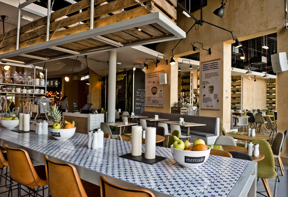Mercado je synonymom zdravia a čerstvosti. Ponúka zaujímavú a nekonvenčnú fúziu zdravých jedál, s použitím lokálnych surovín. V nápojovom lístku reštaurácie Mercado nájdete domáce limonády, tradičné malinovky z domácich sirupov, zdravé smoothies s obsahom “superfoods” ako aj vína z malých alternatívnych slovenských vinárstiev.