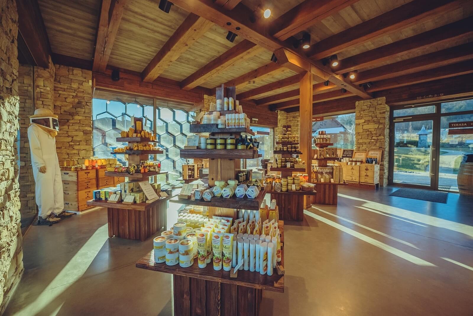 Súčasťou areálu je aj medovinárstvo a remeselný pivovar, kde sa vyrábajú originálne produkty z medu – tradičná medovina, ovocné varianty či medové pivo. Pre rodiny s deťmi je však mimoriadne príťažlivá Medová kaviareň, kde si môžu dopriať medové limonády, koláčiky či kávu, zatiaľ čo deti oddychujú po objavovaní areálu.