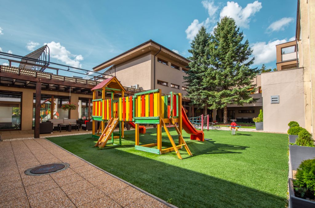 - detské ihrisko v átriu hotela (hojdací koník, detská šmýkačka, lanová preliezačka),