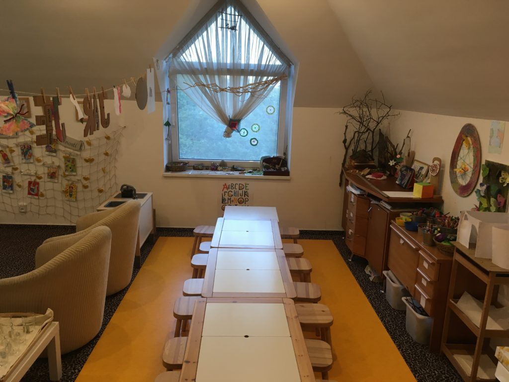 Súčasťou naších dní je používanie nemeckého jazyka formou hravých blokov a fráz. Frekvencia nemčiny sa u nás mení podľa toho ako máme k dispozícii nemecky hovoriaceho sprievodcu alebo rodiča z komunity. Na vstup do klubu nie je nutná znalosť nemeckého jazyka. Nemecký jazyk nevyučujeme ale používame popri deťom a je na každom dieťati koľko si toho zapamätá a ak si rodina želá aby sa nemčinu naučilo je potrebné dieťa podporovať a rozvíjať aj mimo klub.
