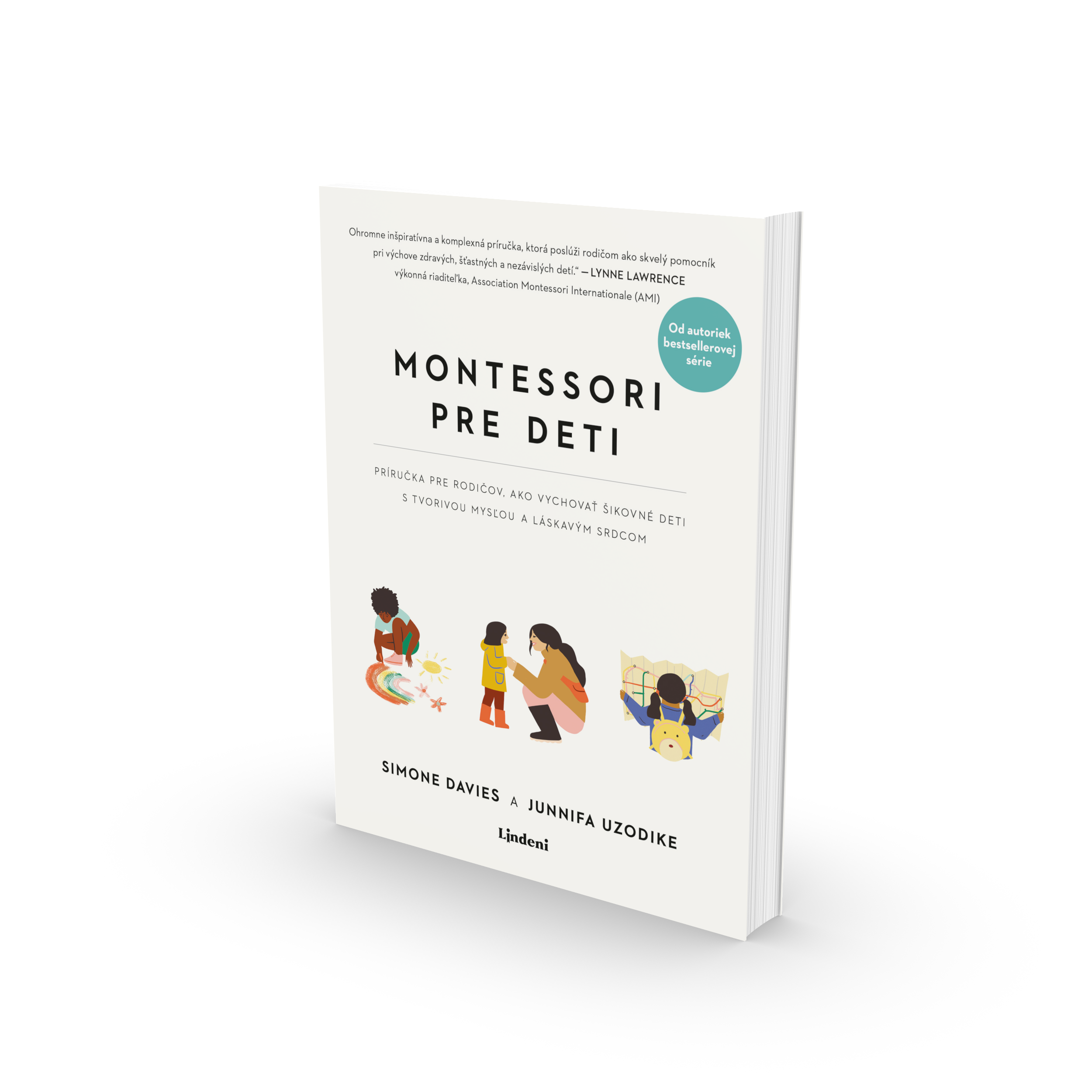 Autorka Simone Davies je montessori učiteľka, ktorá absolvovala výcvik v Medzinárodnej asociácii montessori. Zároveň je autorkou populárneho blogu a instagramového profilu The Montessori Notebook, na ktorom dáva rady a tipy, odpovedá na otázky a organizuje online workshopy pre rodičov z celého sveta. Vo vydavateľstve Albatros Media Slovakia jej pod značkou Lindeni už vyšli publikácie Montessori pre batoľatá a Montessori pre bábätká. Pri tretej knihe si na pomoc zavolala ďalšiu odborníčku, Junnifu Uzodike, ktorá založila Fruitful Orchard Montessori School v Nigérii a jej blog a instagram nduoma sú uznávaným zdrojom informácií. Ich spoločná kniha sa snaží zodpovedať všetky časté otázky o montessori škole, ktoré zaujímajú rodičov detí vo veku 3 až 12 rokov. Ukazuje, ako u nich povzbudiť vrodenú zvedavosť a nezávislosť prostredníctvom spojenia, spolupráce a radosti. Poskytuje tiež cenné rady, ako vytvoriť rodinný život s menším množstvom rozptýlení, komplikácií a času stráveného pri obrazovkách.