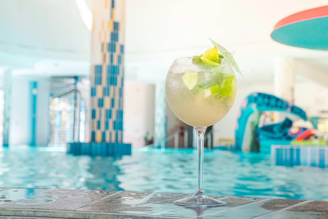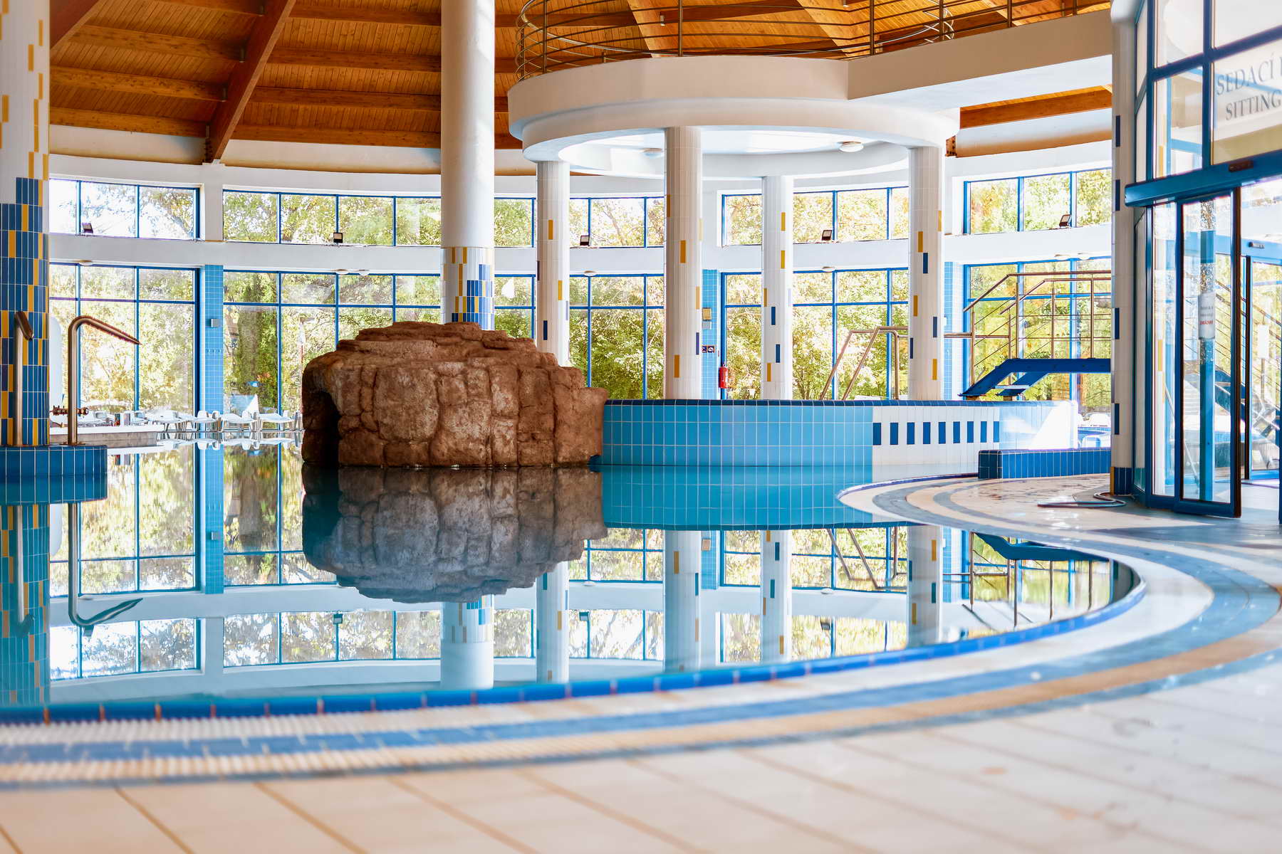 - do bazénového sveta s termálnou vodou: veľký relaxačný bazén, kľudový bazén, vírivka, detský bazén s toboganom