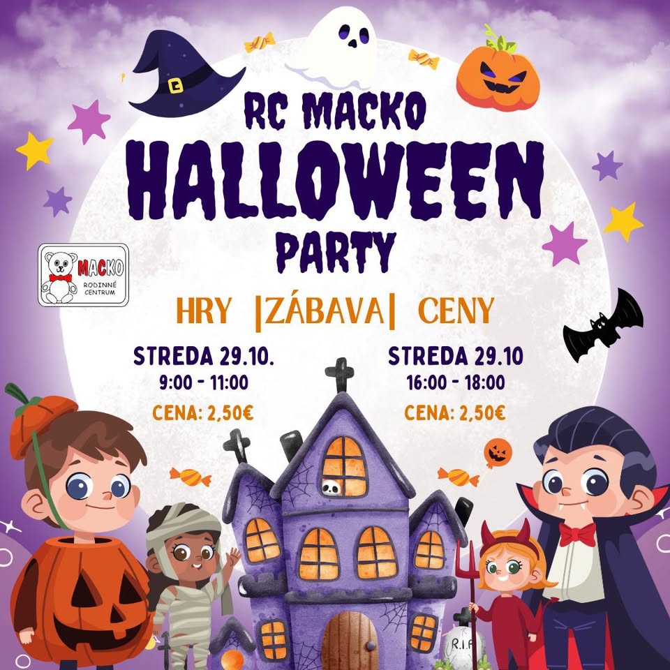 Milí Mackáči, pripravte sa na strašidelne zábavný deň plný hier, tvorenia a smiechu! 👻