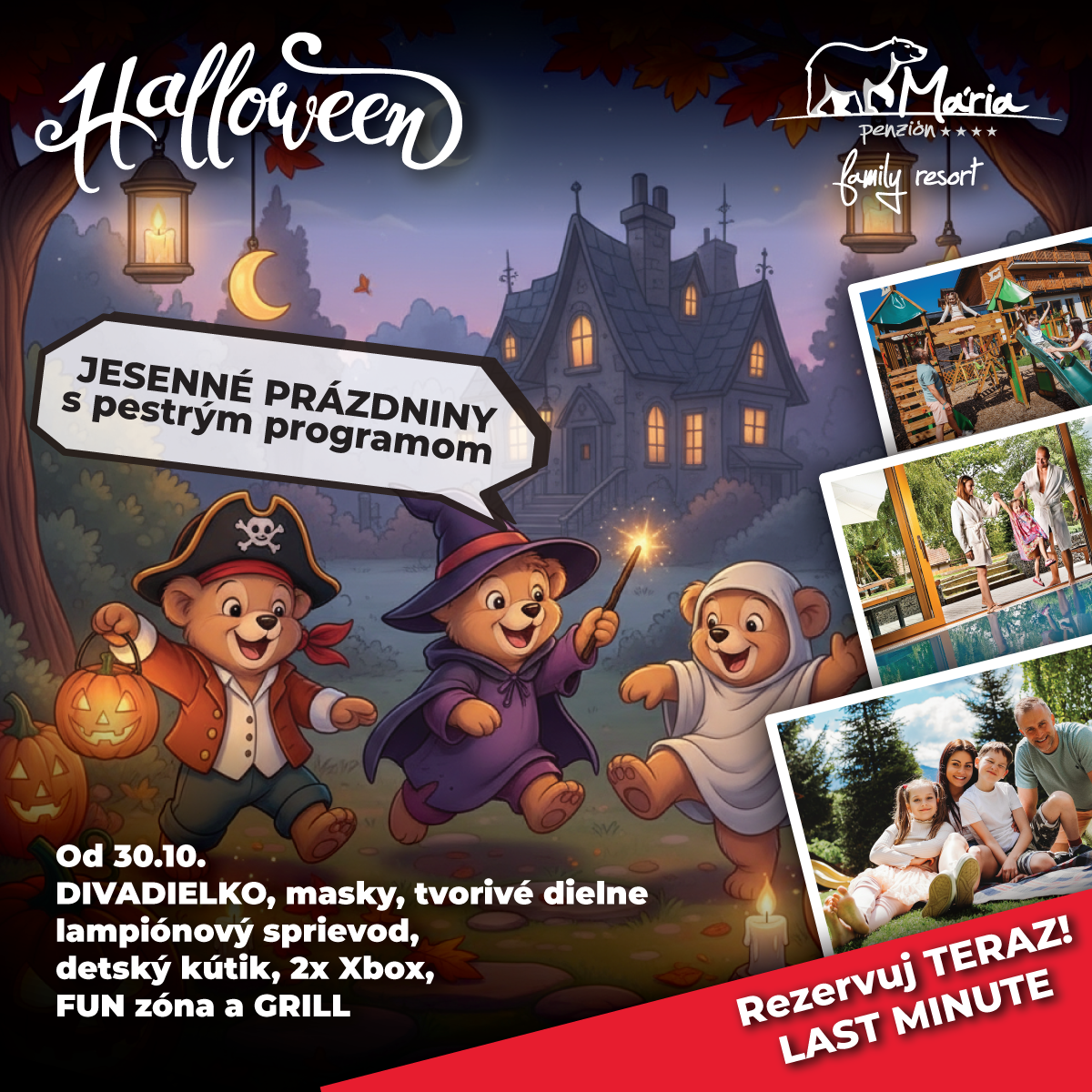 HALLOWEEN🔥Máme posledné voľné izby cez JESENNÉ PRÁZDNINY na Liptove s polpenziou a ANIMÁCIAMI 😄