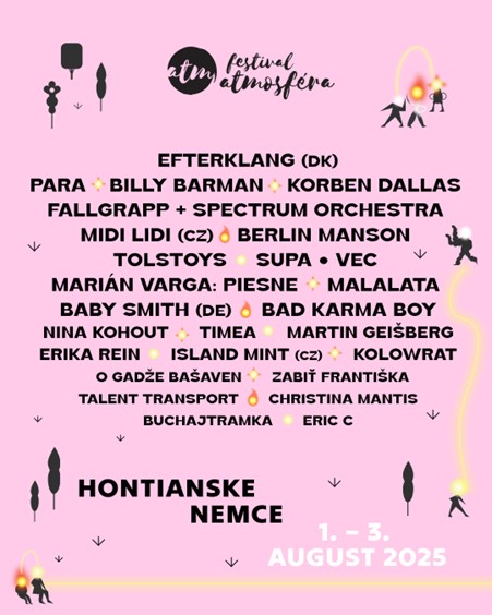 13. ročník Atmosféry, ktorej hlavný vizuál aj tento rok navrhla umelkyňa Han Donau, sa uskutoční od 1. do 3. augusta 2025. Kompletný hudobný program ako aj vstupenky sú dostupné na webe festivalu: https://festivalatmosfera.sk/vstupenky/