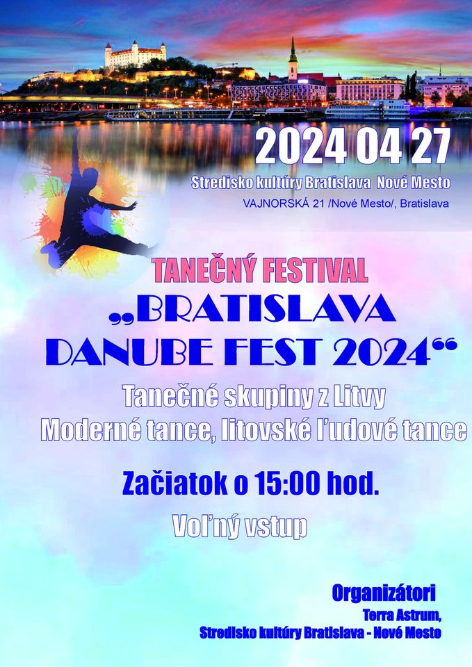 V spolupráci so združením Terra Astrum sa u nás totiž skutoční jednodňový tanečný festival BRATISLAVA DANUBE FEST, na ktorom sa predstavia detské litovské tanečné skupiny. Tancovať budú moderné, ale aj tradičné litovské ľudové tance.