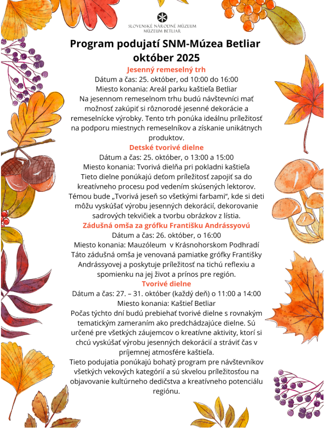 Október 2025 v kaštieli Betliar