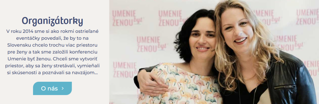 Konferencia Umenie byť ženou vznikla z našej vlastnej potreby rásť a vzdelávať sa. Pochopili sme, že čas je o nás. Čas, ktorý žena venuje sama sebe, keď robí niečo hodnotné len pre seba, je dôležitý. Nakoľko sme nechceli tráviť množstvo víkendov bez rodiny na rôznych workshopoch a seminároch, mali sme túžbu vytvoriť niečo, kde sa stretne veľa kvalitných spíkrov na jednom mieste a v jeden deň. Čo sa nám podarilo a v roku 2023 sa bude konať už 10. ročník našej konferencie pre ženy.
