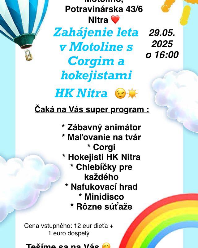 Ahojteee, pozývame Vás ku nám na predčasný deň detí, kde bude o super zábavu postarané �� Bude aj tombola, v ktorej je hlavná výhra oslava u nás v Motoline �