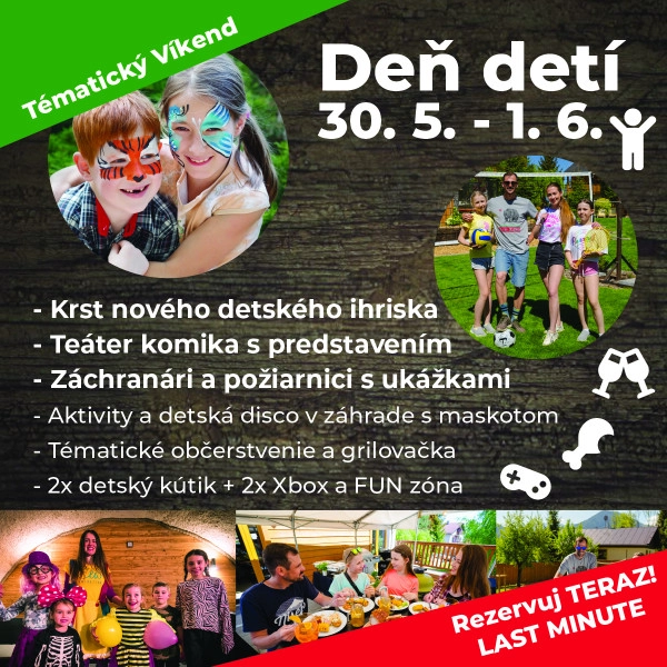 Pobyt DEŇ DETÍ s animáciami + Sobotná Grilovačka v Grill pointe.