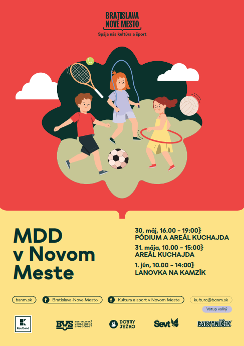 Mestská časť Bratislava-Nové Mesto pozýva všetkých na 3. ročník podujatia Medzinárodný deň detí s prezentáciou športových a vzdelávacích klubov v bratislavskom Novom Meste.