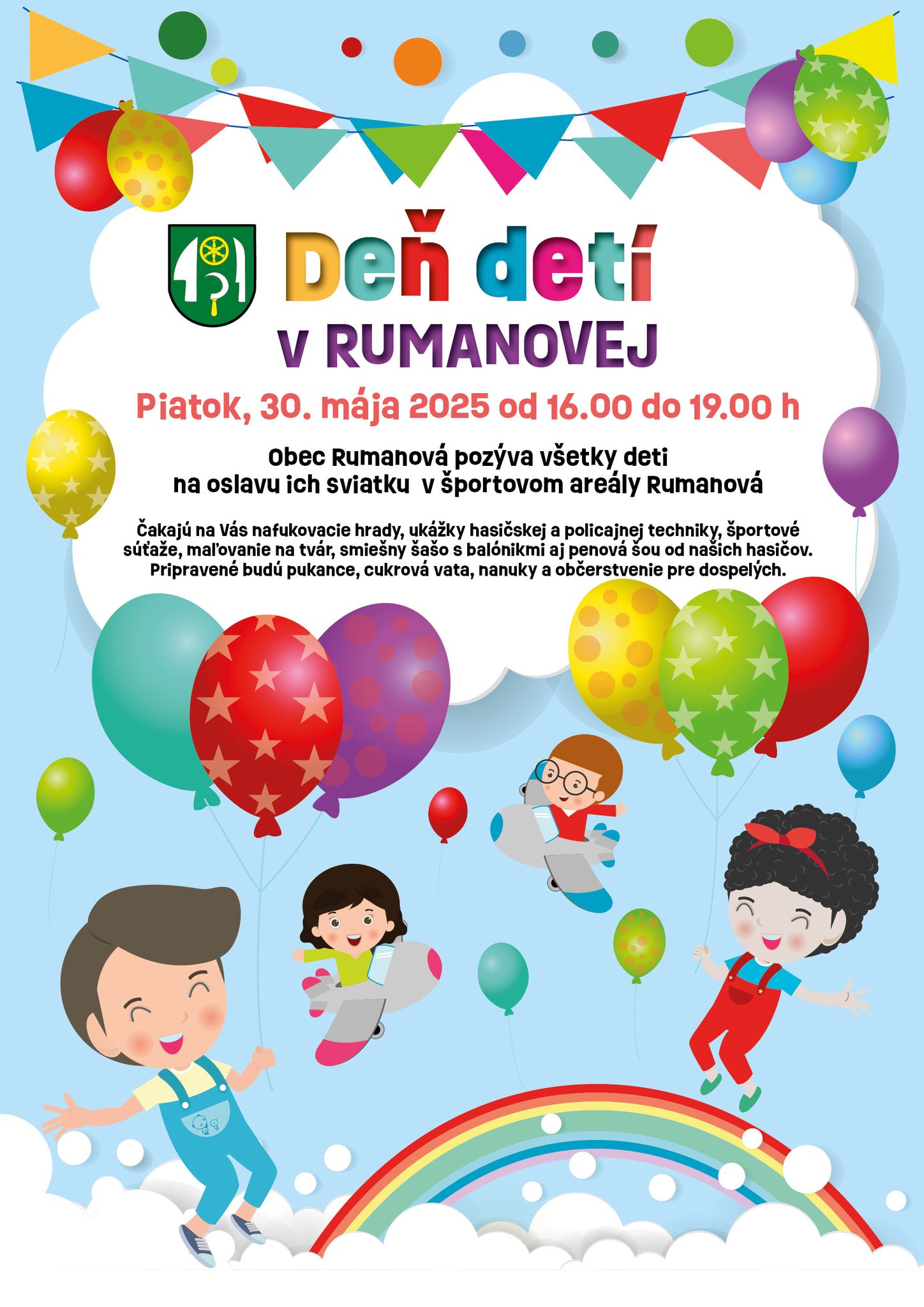 pri príležitosti Vášho sviatku „Medzinárodného dňa detí“ Vás pozývame v piatok 30.05.2025 do športového areálu Rumanová.