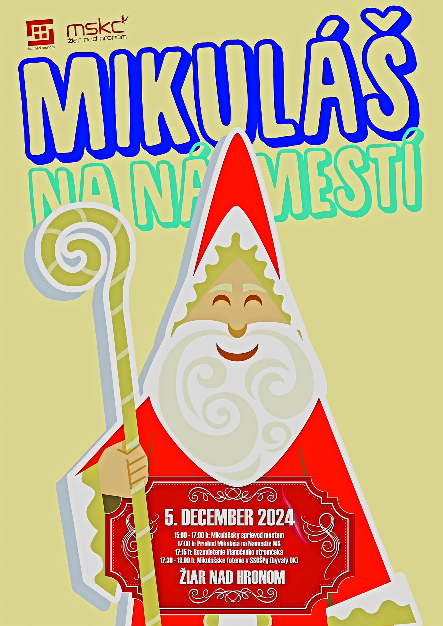 Svätý Mikuláš navštívi naše mesto už tradične v predvečer svojho sviatku vo štvrtok 5. decembra 2024 A nepríde sám. Spolu s ním prídu v sprievode aj anjelikovia a čertíci.