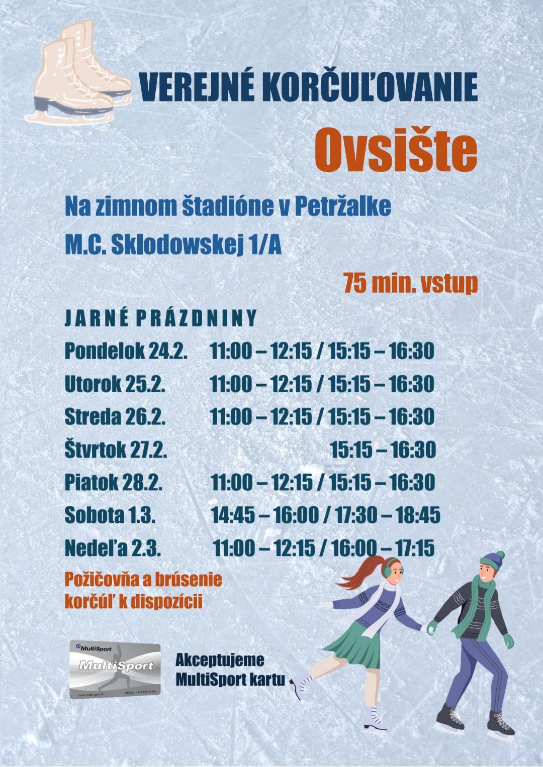 dovoľujeme si Vás informovať, že verejné korčuľovanie pokračuje termínami aj počas jarných prázdnin