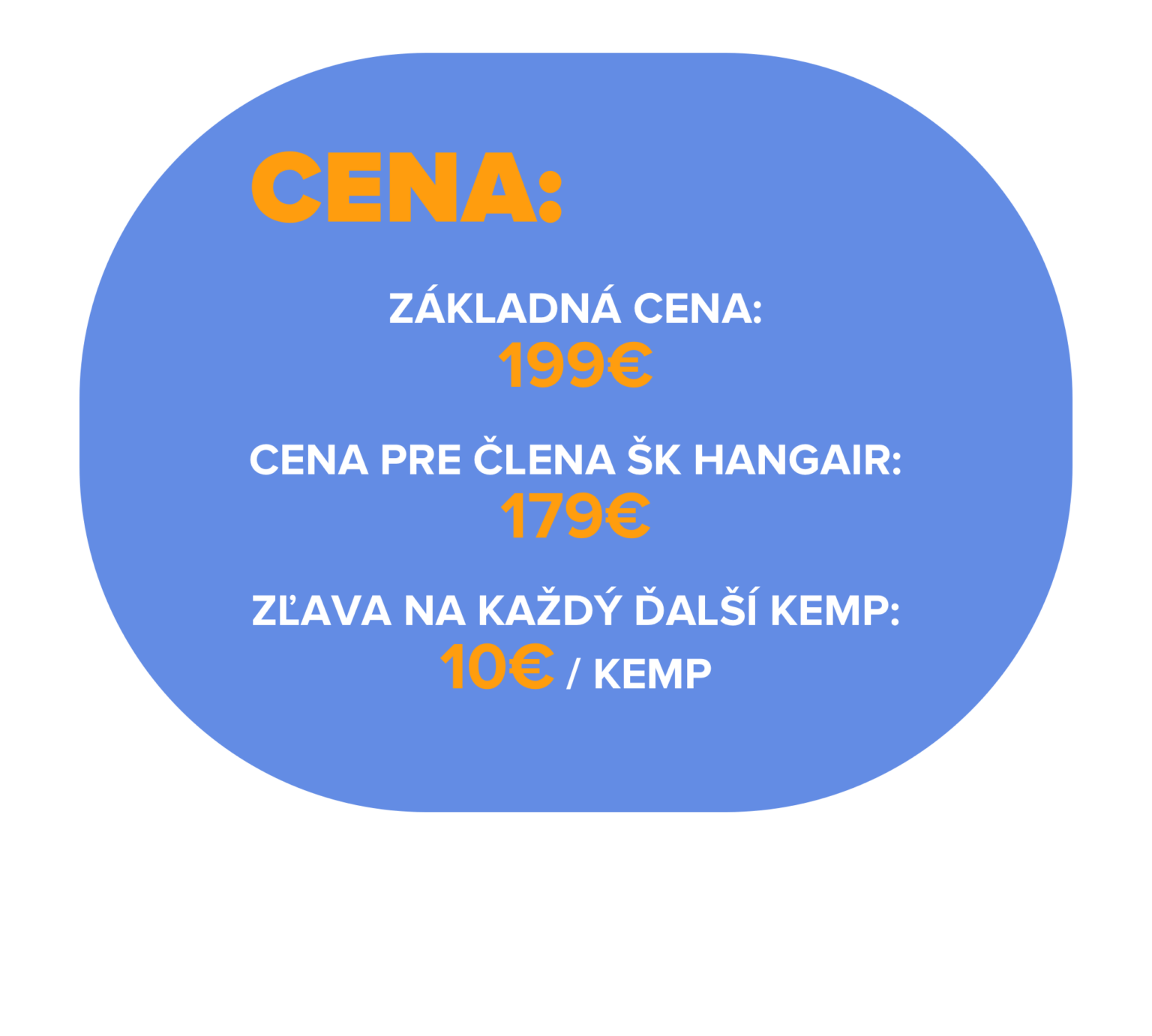 V cene sú zahrnuté: Rozcvička, tréning, trampolíny, hry, odpočinok s teóriou športu, strava, fotky na pamiatku