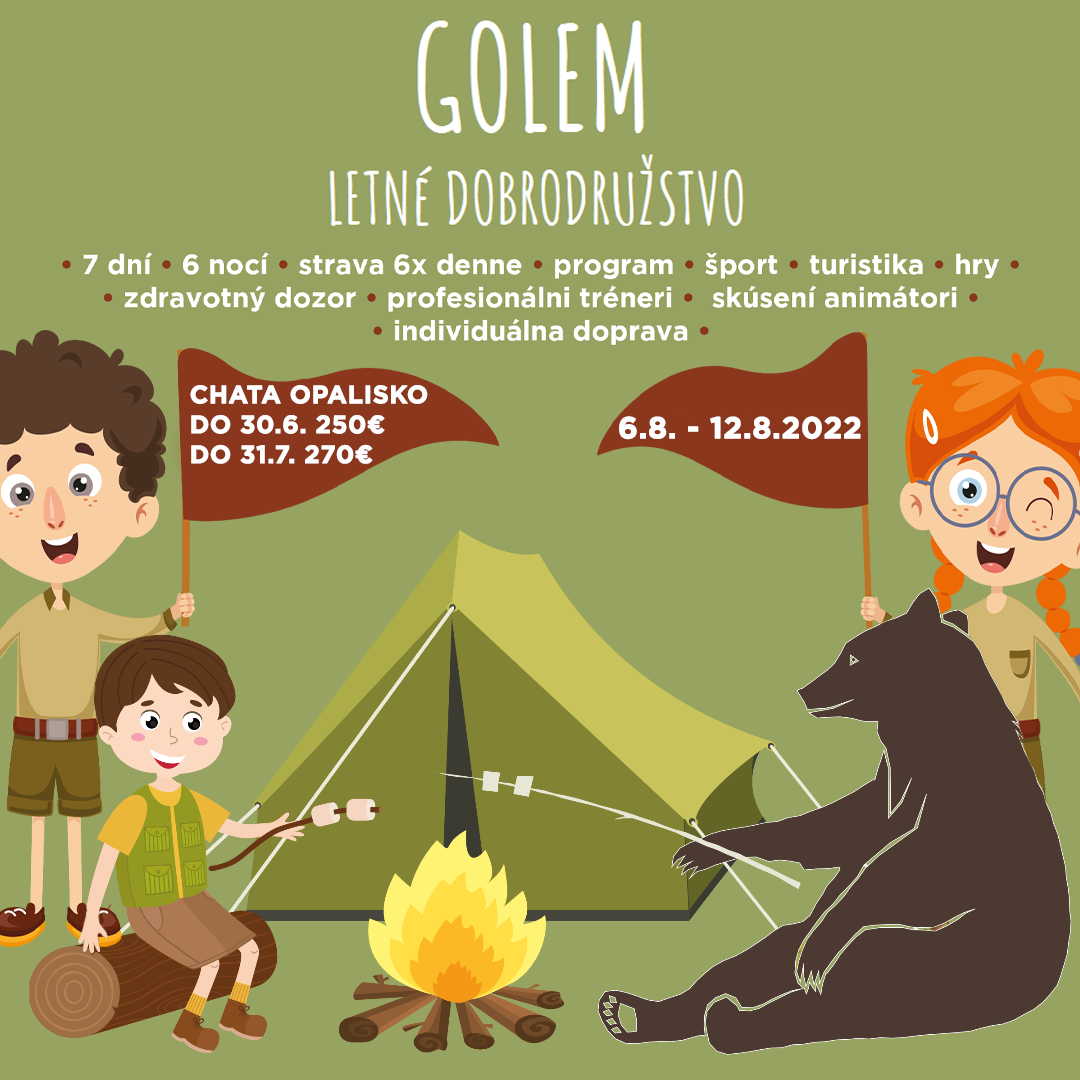 Vyveďte vaše deti mimo komfortnej zóny betónovej džungle a nechajte ich stráviť s nami kopec zábavy v horách. Pod dohľadom trénerov a animátorov si užijeme týždeň plný zábavy a najmä pohybových aktivít. Spoločne objavíme krásy prírody, nočnú oblohu (ktorú bežne pod svetlami lámp nevidno) a rozhýbeme krky uvädnuté smerom nadol z pozerania do tabletov a smartfónov.