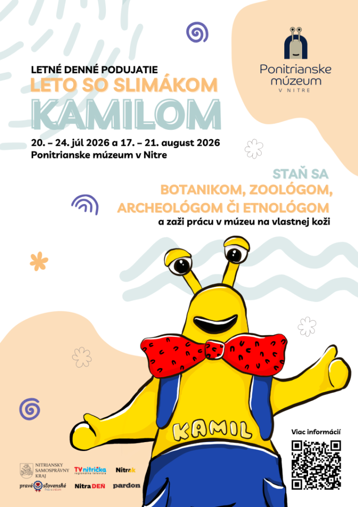 Ponitrianske múzeum v Nitre si pre vás pripravilo denné letné podujatie určené pre deti vo veku 8 – 12 rokov. Spolu s maskotom múzea slimákom Kamilom a lektormi spoznáte múzeum, zoznámite sa s prácou v múzeu, dozviete sa množstvo zaujímavých informácií, spoznáte zaujímavé miesta v meste.