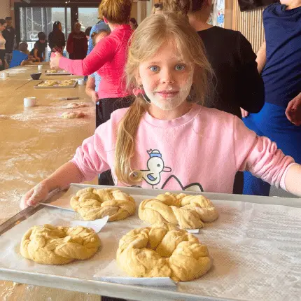 Voňavé cesto, mandľové lupienky, zlatistá kôrka… áno, hovoríme o skutočnom veľkonočnom mazančeku! Príď si s nami zašpiniť ruky od múky a upeč si svoj vlastný mazanec presne podľa svojho gusta. Staň sa na chvíľu malým pekárom: miesiš, zdobíš a hlavne si celé pečenie poriadne užiješ. Cítiš tú vôňu? Každý krok je dobrodružstvo, každý záhyb cesta malý úspech a výsledok… úplná pochúťka!