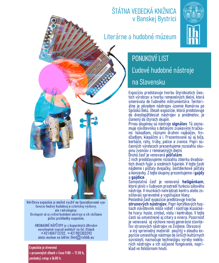 Ponukový list expozície Ľudové hudobné nástroje na Slovensku.
