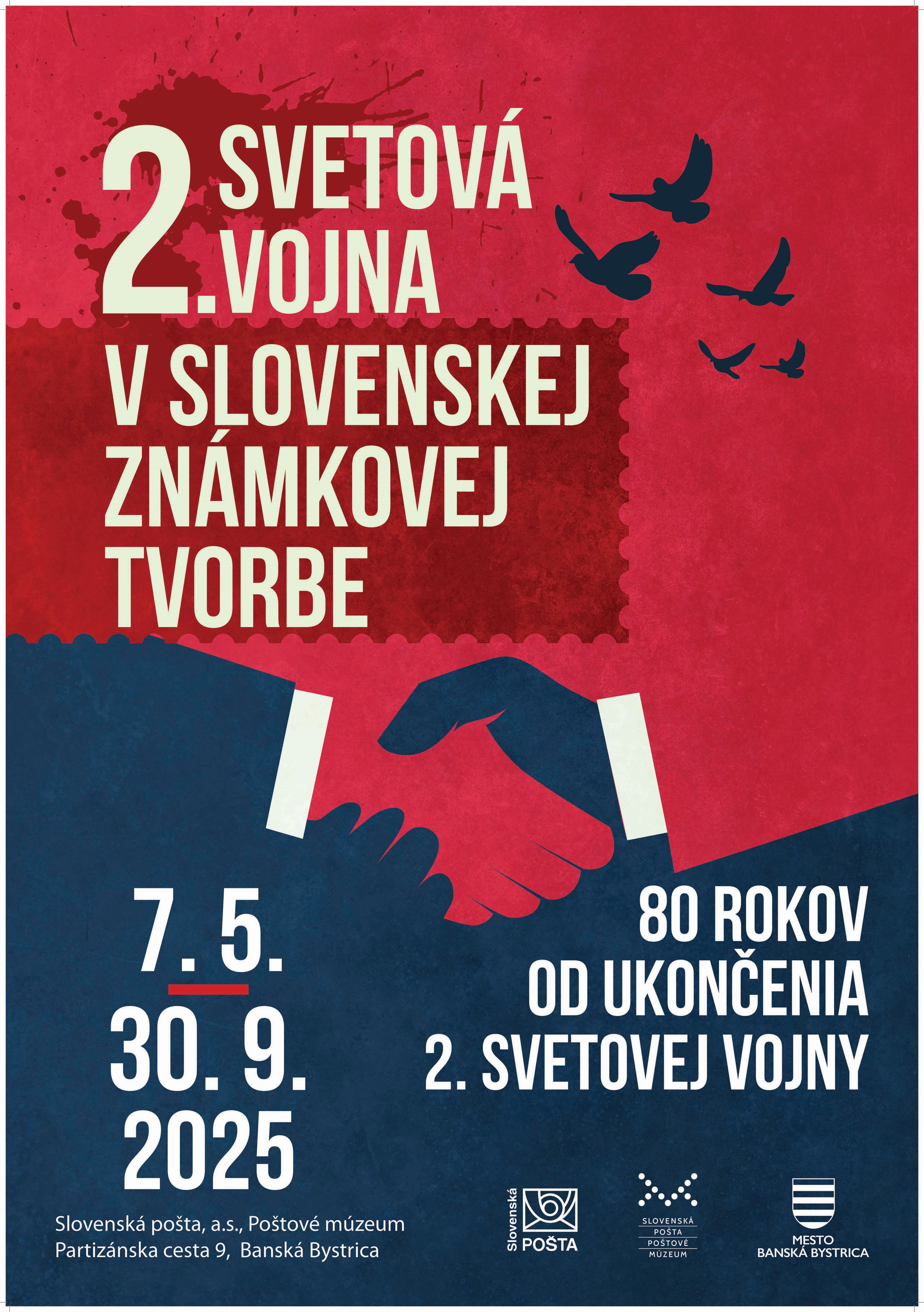 Výstava 2. svetová vojna v slovenskej známkovej tvorbe pripravená Slovenskou poštou, a. s., Poštovým múzeom pri príležitosti 80. výročia ukončenia bojov najväčšej a najtragickejšej vojny v dejinách predstavuje 14. emisií slovenských poštových známok vydaných od roku 1993 až do súčasnosti v piatich ucelených blokoch venovaných holokaustu, Slovenskému národnému povstaniu, osobnostiam v boji za mier, pamätným miestam a koncu vojnových hrôz.