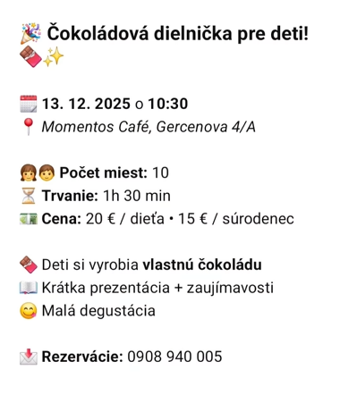 Čokoládová dielňa pre deti 13.12.2025