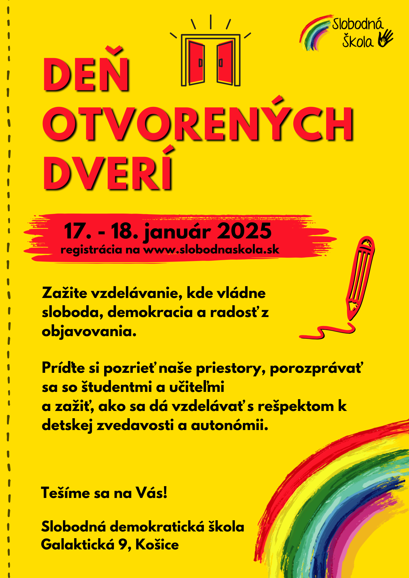 Vstúpte do sveta, kde sa vzdelanie stretáva so slobodou! Pridajte sa k nám na Deň otvorených dverí v rámci festivalu Learning Planet. Zažite na vlastnej koži, ako naši žiaci prosperujú v samoriadenom, inkluzívnom a demokratickom prostredí.