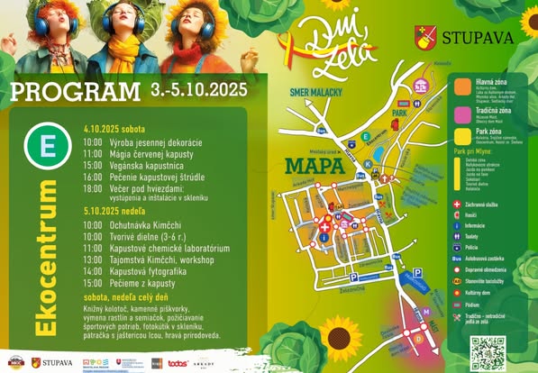 Pozývame vás preto 4. a 5. októbra 2025 na Dni zelá v Ekocentre Stupava. Čaká nás spoločné pečenie, ochutnávka aj Stupavské Kimchi, workshop, kapustové chemické laboratórium aj magický ateliér s kapustou, chýbať nebude tvorenie pre deti aj dospelých či jesenný fotokútik v skleníku, … Pripravili sme si pre vás aj večer pod hviezdami, ktorý bude v atmosfére nášho parku naozaj magický. Po celý víkend pre vás bude k dispozícii športové vybavenie, knižný kolotoč, kamenné piškvorky, výmena semiačok a sadeníc, pátračka s jaštericou Icou či hravá prírodoveda. Ak teda budete mať chuť trošku uniknúť od ruchu v hlavných zónach, u nás vás privíta zelená chillout zóna![]()