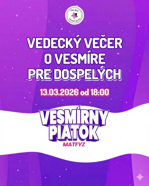 Máte plány na 13. marca 2026? Príďte s nami preskúmať tajomstvá vesmíru na Fakultu matematiky, fyziky a informatiky UK v Bratislave. Čaká vás deň plný zážitkov, vedy a objavov, ktorým vás bude sprevádzať Matúš Toderiška.