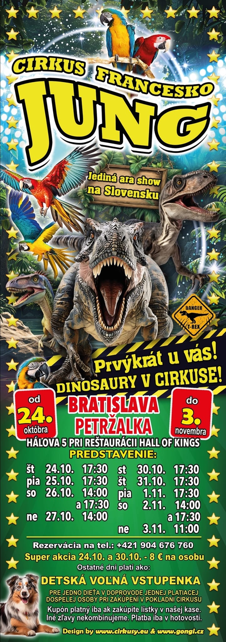 Nechajte sa vtiahnuť do cirkusového šapitó! CIRKUS FRANCESKO JUNG si pre všetky detičky, ale aj dospelých pripravil show s kopou zábavy. Ráčte sa usadiť a pripravte sa na jazdu plnú emócií. Budete sa smiať, radovať i žasnúť. Rozhodne však nebudete ľutovať.