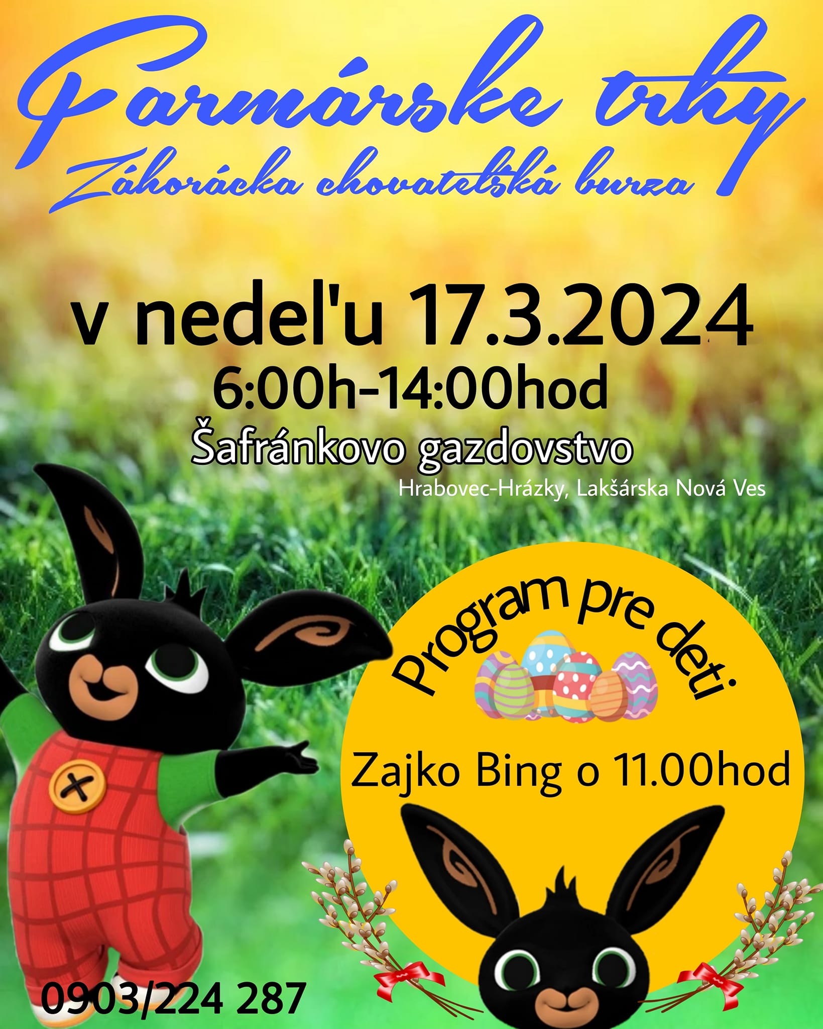 Kedy: V nedeľu 17.3.2024 od 6:00 ráno do 14.00hod (v prípade pekného počasia aj dlhšie)