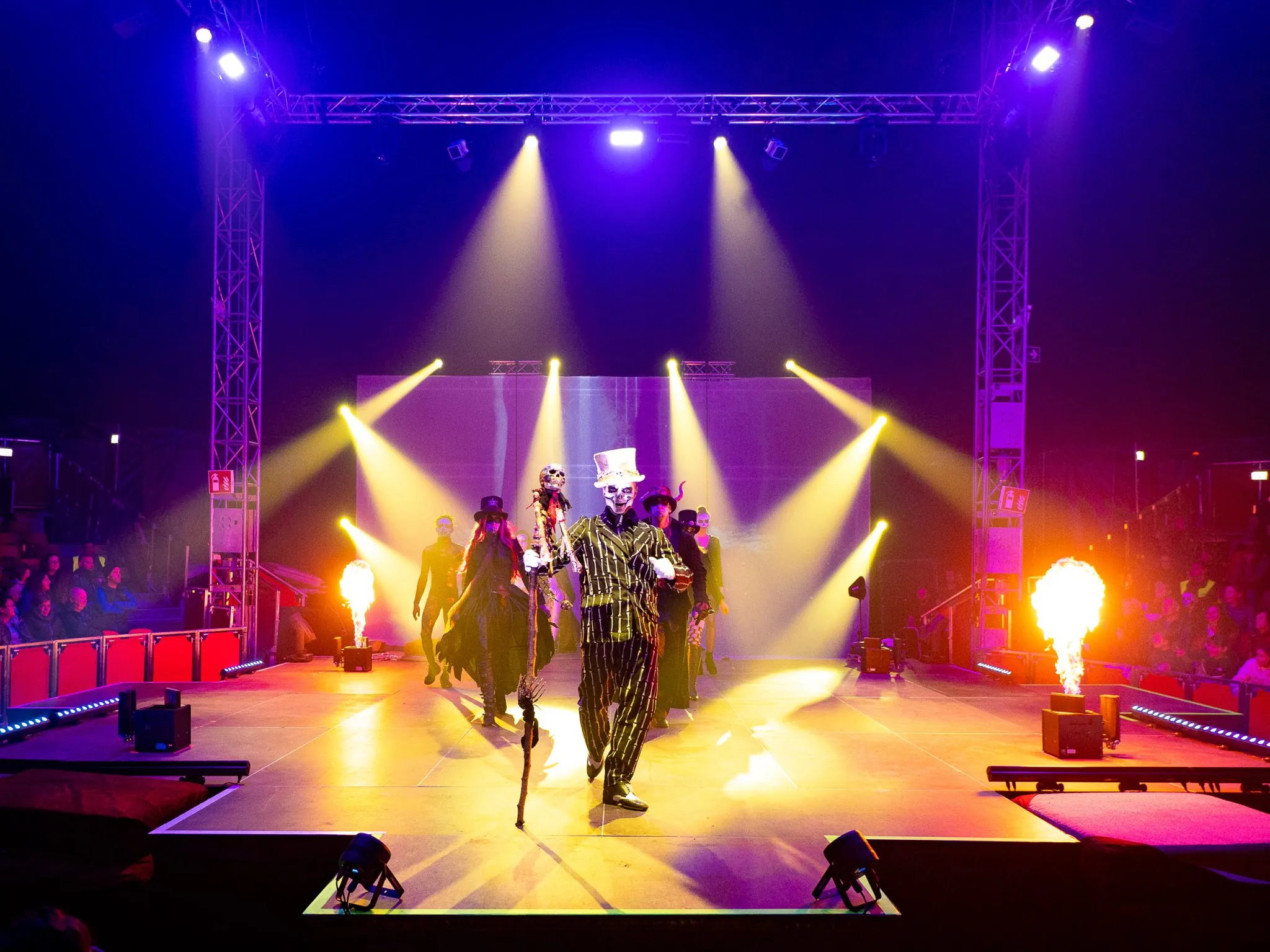 Večerná šou je o niečo temnejšia! Zabávať vás budú fantastické strašidelné bytosti zo sveta vampírov, vúdú a mexického sviatku mŕtvych. Nechajte sa strhnúť neuveriteľnými scénami s oceňovaným duom akrobatov na hrazde, neskutočnou obrovskou hojdačkou a famóznymi spevákmi. Čaká vás šou plná zimomriavok a chvíľ, na ktoré budete ešte dlho spomínať!