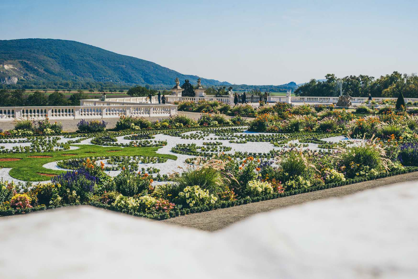Barokový zámocký areál Schloss Hof zažil najväčší stavebný rozmach v prvej polovici 18. storočia, keď sa jeho majiteľom stal princ Eugen Savojský. Princov francúzsky pôvod ho predurčoval na dokonalý vkus a estetické cítenie. Na jeho želanie boli vybudované veľkolepé barokové záhrady. Predispozícia pozemku na miernom návrší bola dokonalým základom pre výstavbu terasovitých záhrad. Každá záhradná terasa má svoju jedinečnú kompozíciu, no zároveň vytvára jednoliaty celok v barokovej symetrii. Kvetinové záhony tvorí viac ako 40 000 sadeníc rozmanitých druhov kvetov. Luxusný nádych dodávajú záhradnému celku viaceré fontány. Práve tie vždy symbolizovali prepych a postavenie, keďže so zásobami vody to bolo veľmi náročné. Dnes si v týchto autentických záhradách môžete dopriať dlhú prechádzku či oddych v podobe príjemného pikniku.