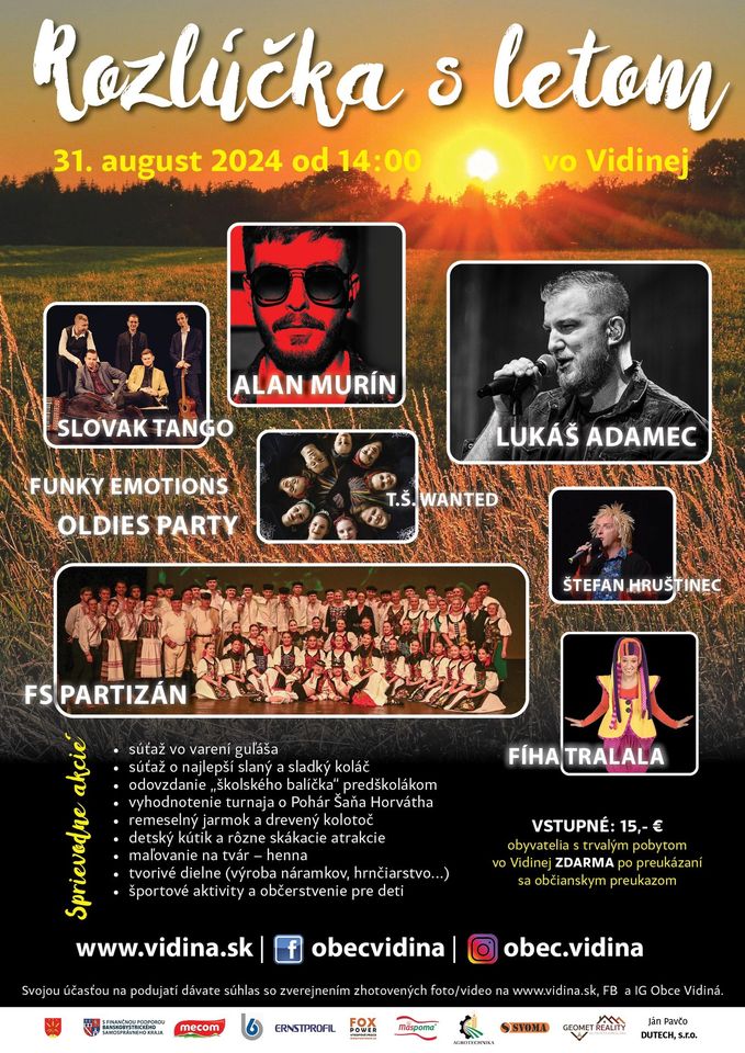 Aj tento rok sa rozlúčime s letom v štýle zábavy, dobrej nálady, hudby a mnohých sprievodných akcií.