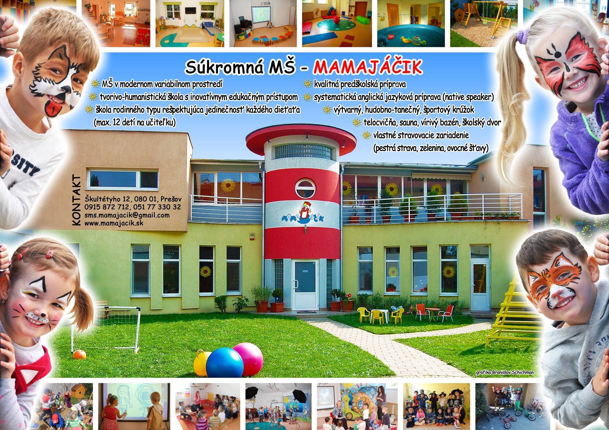 Súkromná MŠ – Mamajáčik so svojím vnútorným aj vonkajším priestorom nachádzajúcom sa v blízkosti centra mesta Prešov umožňuje realizovať vlastné nápady vo variabilnom prostredí tried a tiež pozorovať a chrániť prírodu v areály MŠ, a to v každom ročnom období. Uprednostňujeme prírodný materiál pred umelým, čo sa odráža na zariadení školy.