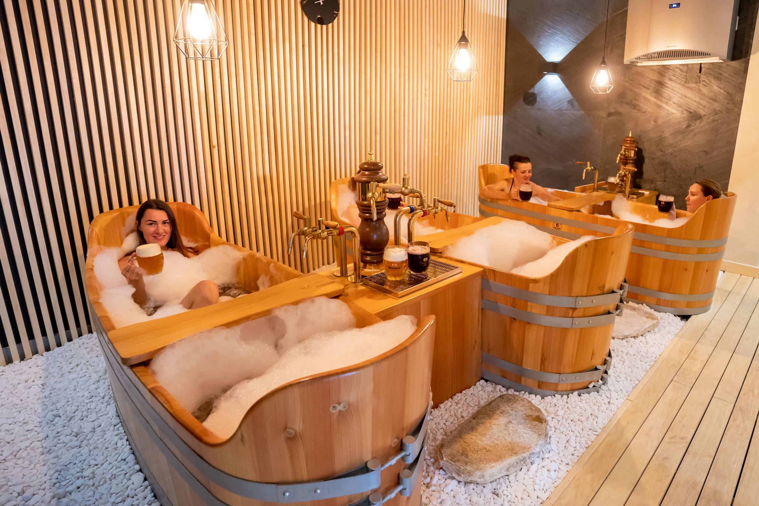Zažite jedinečné pivné kúpele priamo v Maladinove. Teplý perličkový kúpeľ s pivným a chmeľovým extraktom omladí pokožku, posilní vlasy a nechty, zregeneruje nervovú sústavu a svaly a harmonizuje celý organizmus. Ku kúpeľu si doprajete neobmedzené pitie piva Bernard a po kúpeli sa zrelaxujete na lôžku.