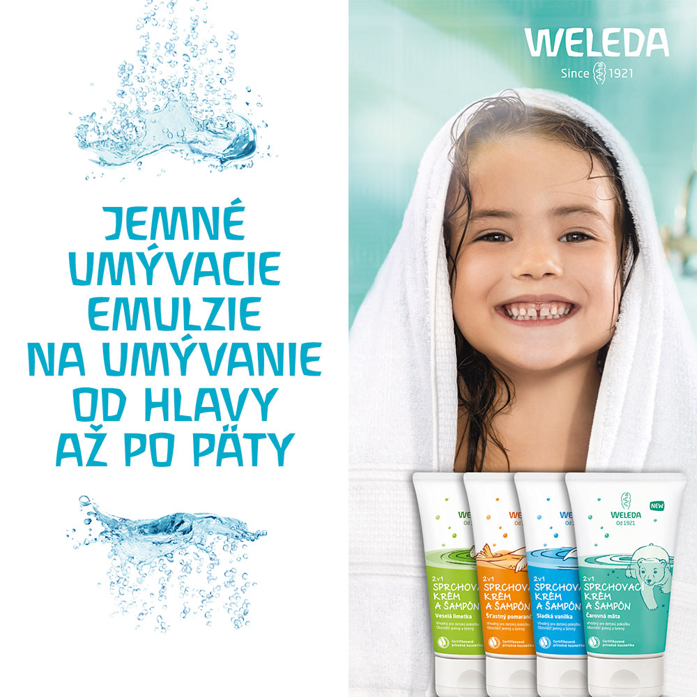 Jemná umývacia emulzia na umývanie od hlavy až po päty nevysušuje pokožku a je šetrná k očiam. Vďaka receptúre z prírodných surovín je obzvlášť vhodná pre detskú pokožku. Weleda predstavuje značku vysoko kvalitné prírodné a BIO kozmetiky, ktorá rešpektuje životné prostredie. Korene značky siahajú až do roku 1921, takže má Weleda skúsenosť s výrobou prírodnej kozmetiky už takmer 100 rokov. V sortimente nájdete prípravky pre starostlivosť o pokožku celého tela vyrobené z tých najčistejších surovín. Za najvyššiu kvalitu čisto prírodnej kozmetiky a BIO kozmetiky ručí certifikát NATRUE.