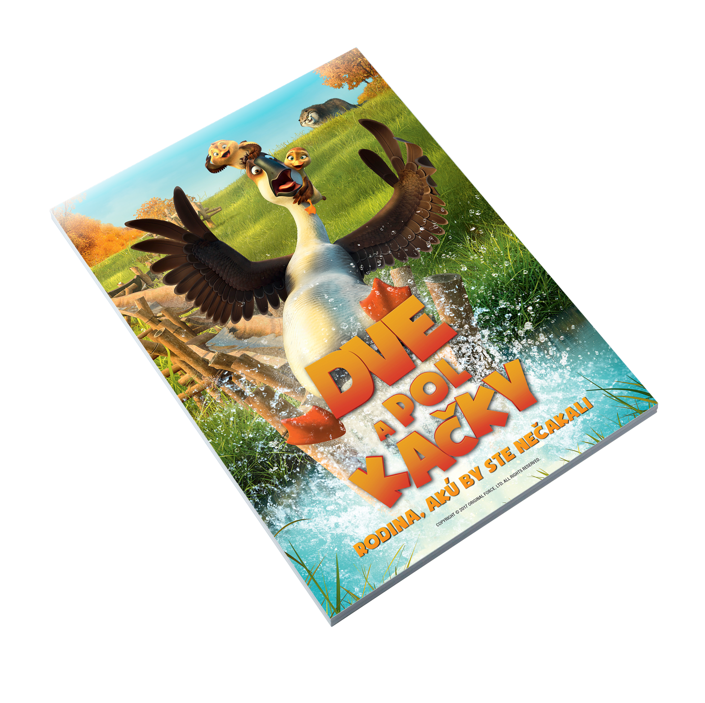 Tieto vtáky rozhodne nie sú nahnevané, svoj život si užívajú plnými zobákmi. Byť v husej koži je ťažká pohoda, predovšetkým pre gunára v najlepších rokoch. Animovaná komédia „Dve a pol kačky“ prinesie jednému takému gunárovi špeciálnu úlohu. Musí sa začať starať o dve malé kačičky a pomôcť im z bahna, ktoré tak trochu sám spôsobil. Ich spoločné dobrodružstvo ukáže, že rodina môže mať všetky možné podoby aj tvary a dokonca aj perie. A že priateľstvo a rodina je tá najväčšia zábava a jazda.