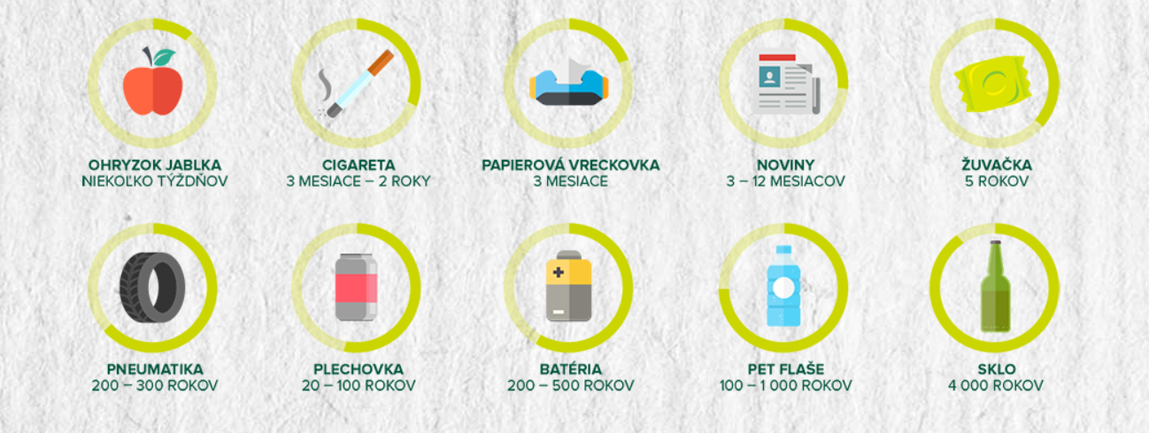 Tu je niekoľko príkladov ako dlho trvá prírode rozložiť niektoré druhy odpadov: