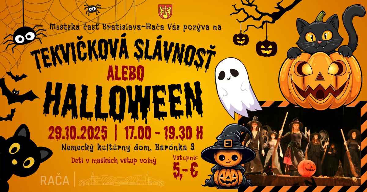 Prídte si užit magický vecer plný jesennej nálady, strašidelných masiek a zábavy pre celú rodinu! V Nemeckom kultúrnom dome na Barónke sa uskutocní oblúbená Tekvicková slávnost alebo Halloween, kde nebude chýbat vyrezávanie tekvíc, halloweenske hry, malovanie na tvár ci tematické sútaže.